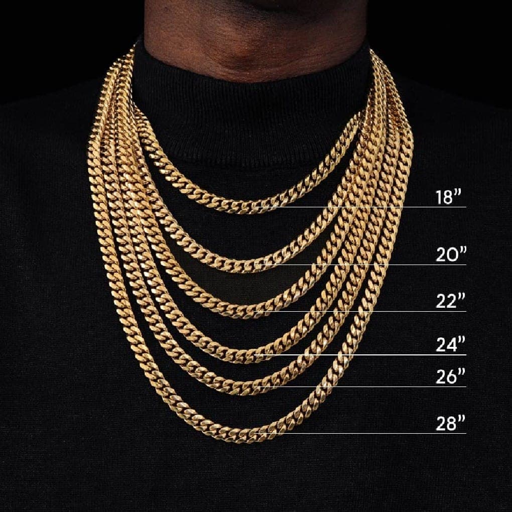 If you primarily wear open-collar shirts, choosing a length that falls between the collarbone and mid-chest (20-22 inches) will display your chain most effectively. If you primarily wear open-collar shirts, choosing a length that falls between the collarbone and m
