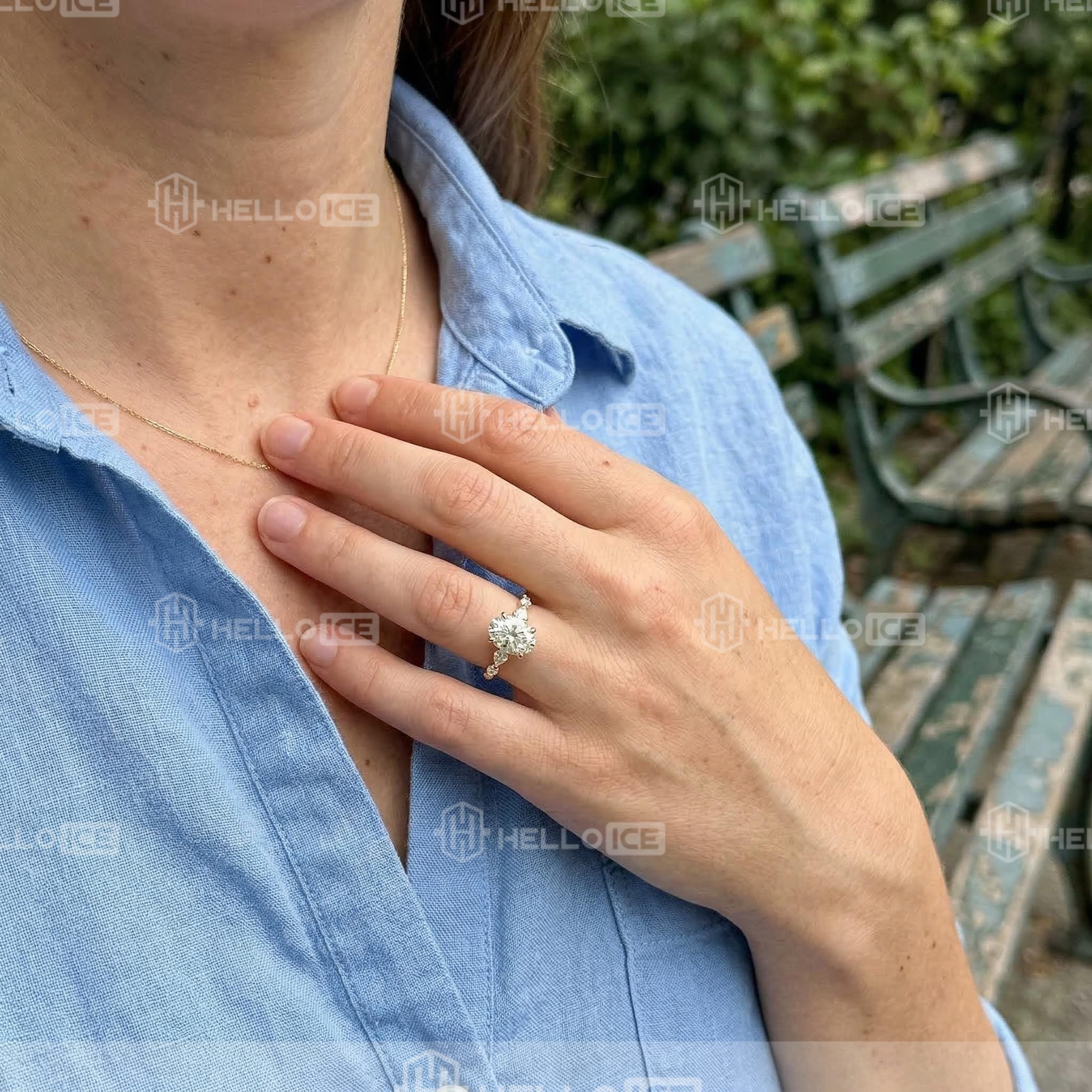 The oval shape is gorgeous. She gets compliments on it every single day. Totally worth it.