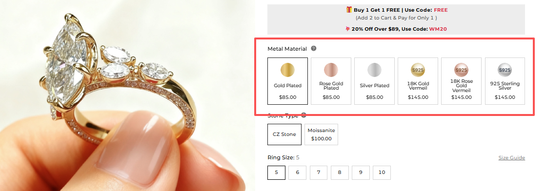 Our main stone type is Cubic Zirconia Stones, which is an excellent alternative to natural gemstones because it is more scratch-resistant for everyday wear. Unlike natural gemstones that are mined from the earth using large machinery, explosives, and unsafe working conditions, lab-created sapphire was developed to be more durable with better optical characteristics than of a diamond while maintaining an ethical standard to protect our environment.