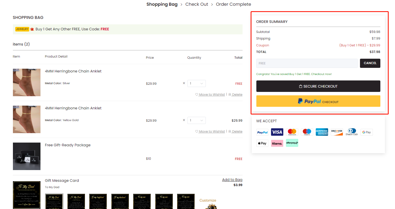 Don't worry about it. We promise an easy 30-day return policy. If you don't like the jewelry after you receive the package, just return it unused and in its original packaging. Upon acceptance of your return, the refund will be issued to your original account. Any promotional gifts must also be returned with your returned item.