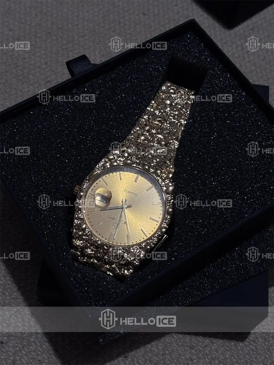 The watch looks super icy in person! Honestly way better than the pictures. Fits my wrist perfectly and feels solid, not cheap at all.