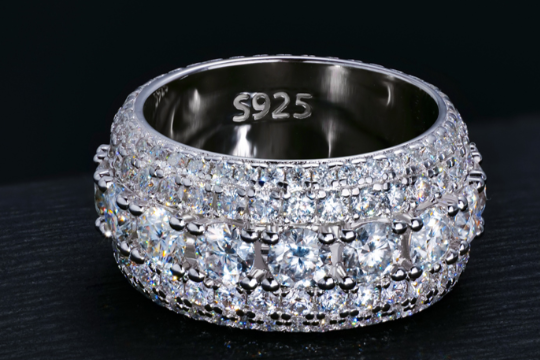 Q: Is The Moissanite Round Cut Band Ring in S925 Sterling Sliver Fully Iced Out All The Way Around?