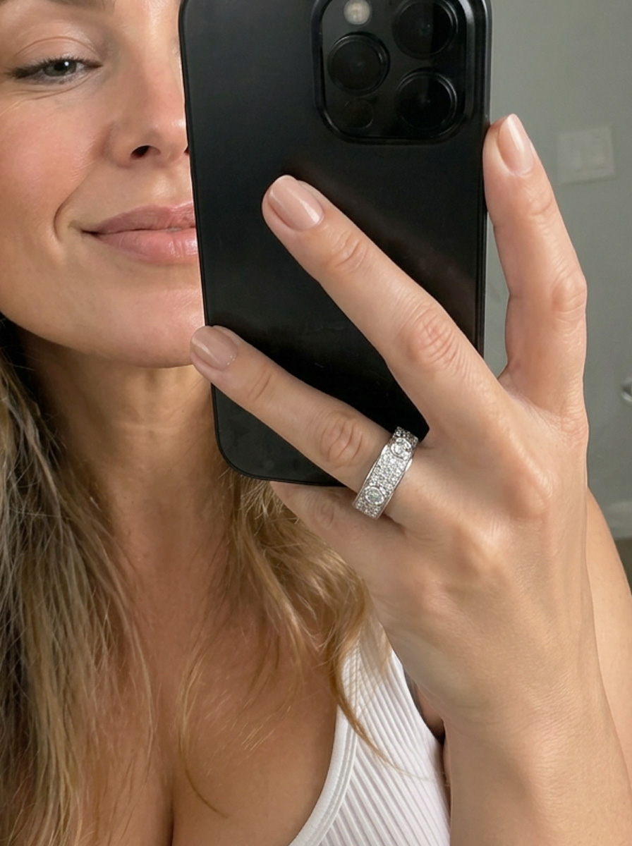 The full diamond wedding band is just perfect. It's elegant and eye-catching.