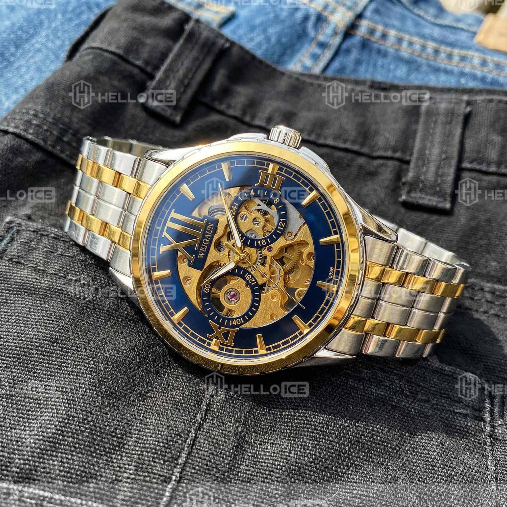 40mm Two Tone Iced Blue Dial Watch In White Gold